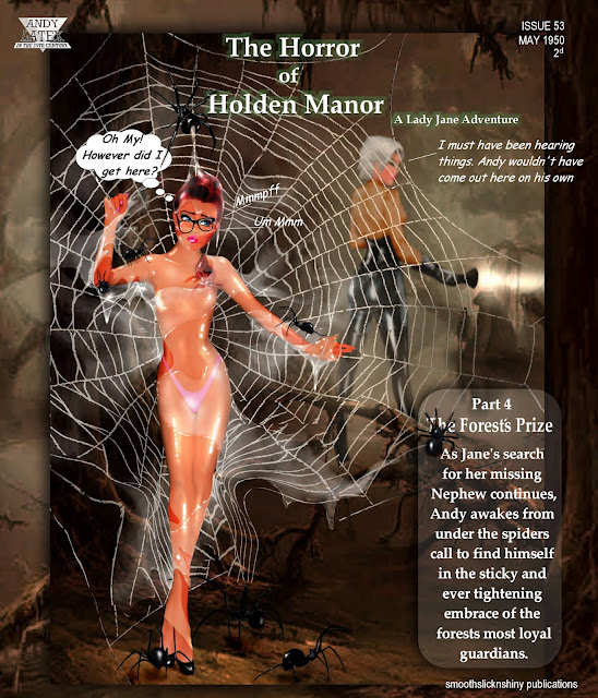 It happens to every artist that not every piece is as well received as others. In saying that though your art is still loved and adored just instead of having everyone love it like usual you just have a little less. Personally I’m in love with all your work and Andrew can make a paper bag look amazing. In saying that your picture would be a perfect cover for a hardy boys book(well a more adult oriented one 😉). The picture is beautifully done with the spiderwebs wrapped around his hand and the slime covering the majority of his body. Hopefully he can get his hand free enough to take the slime off his mouth so that he can call to his Aunt. Or that his Aunt will turn around before the slime eats the last of his clothing. The real question is did he end up in this predicament because he didn’t listen to his aunt and went exploring on his own, or was it just simply being in the wrong place at the wrong time. Even more important does Andy realize what’s crawling over him. At least his heels made it through the ordeal. Never know when they will have to be used as a form of defense. Lovely art and one I really enjoy spiders and all. I mean Horror is in the title so it’s supposed to be scary and spiders are definitely icky and scary. So good job pulling off the horror part. Like always amazing skill and wonderful detail. Keep doing what you love and we will keep keep commenting and wishing we had your talent....at least I do anyways. I mean my stick figures having amazing detail and life like qualities but I feel like there is something missing......lol 😂😂😂😂.