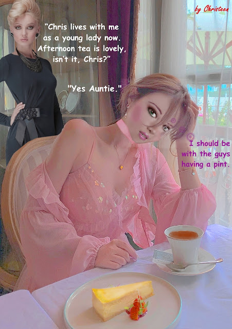 The things he would do for his Auntie. He hoped she’d put those boots back on when they got home tonight. Maybe she’d let him wear his stockings and suspenders to bed too. He did want to be properly girlie for her.